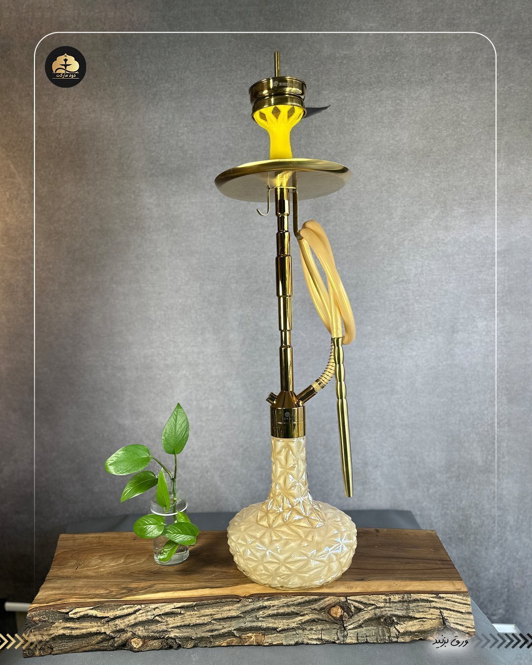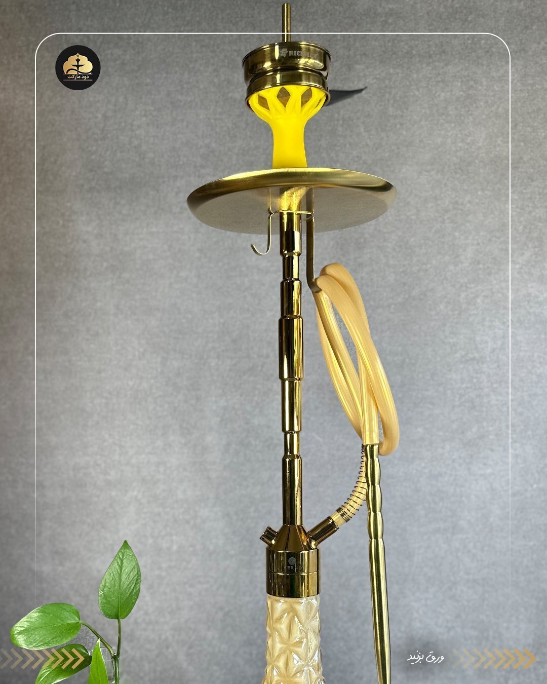 قلیان کرنو کالیفرنیا طلایی با شیشه نسکافه ای | خرید قلیان کرنو