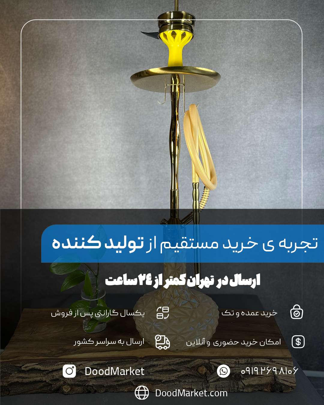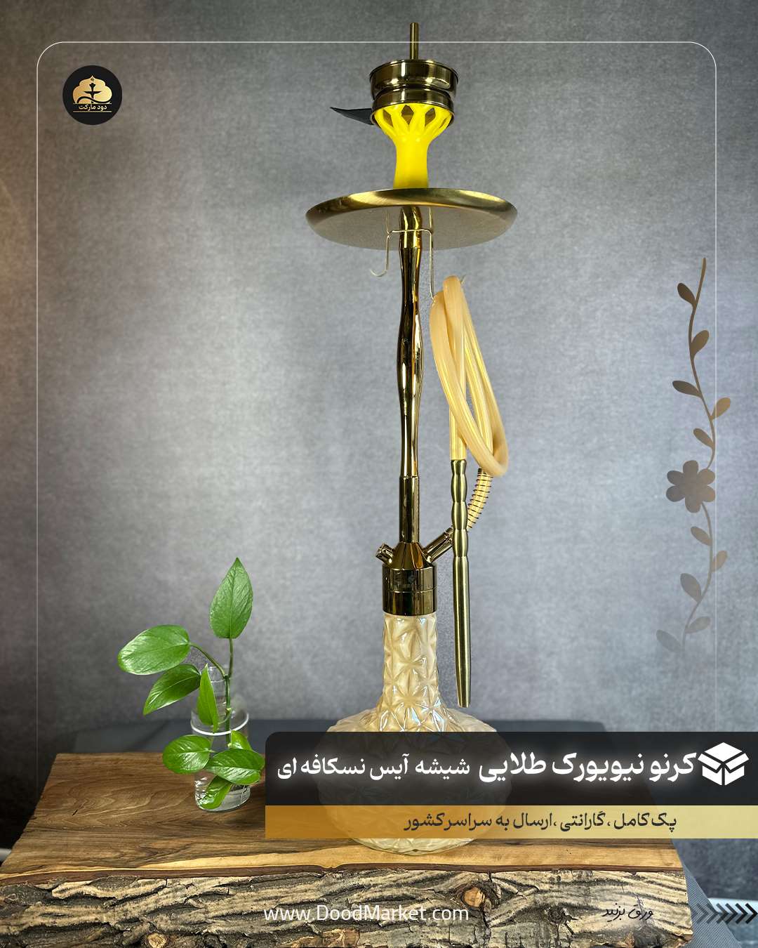 قلیان کرنو نیویورک طلایی با شیشه نسکافه ای آیس | خرید قلیان لوکس کرنو