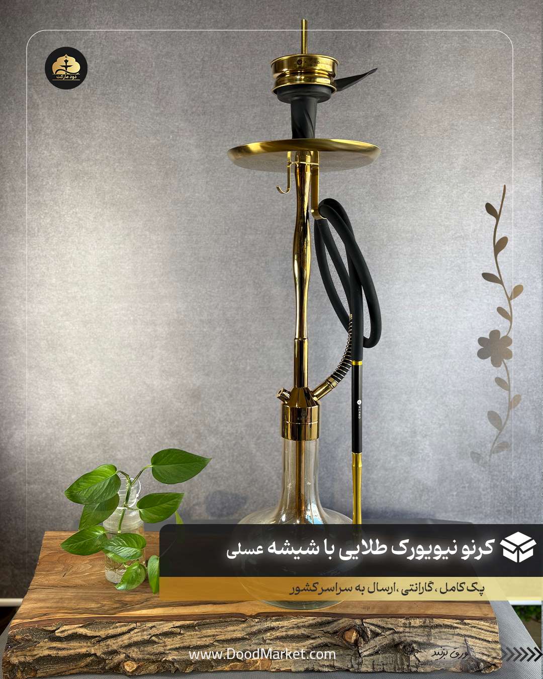قلیان کرنو نیویورک نقره ای با شیشه عسلی | { اصل + 3 سال گارانتی }