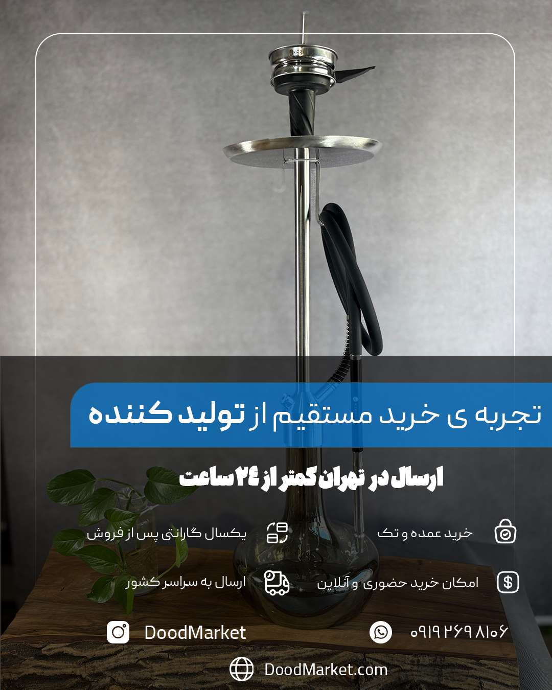 قلیان کرنو تگزاس نقره ای با شیشه دودی | خرید قلیان لوکس کرنو