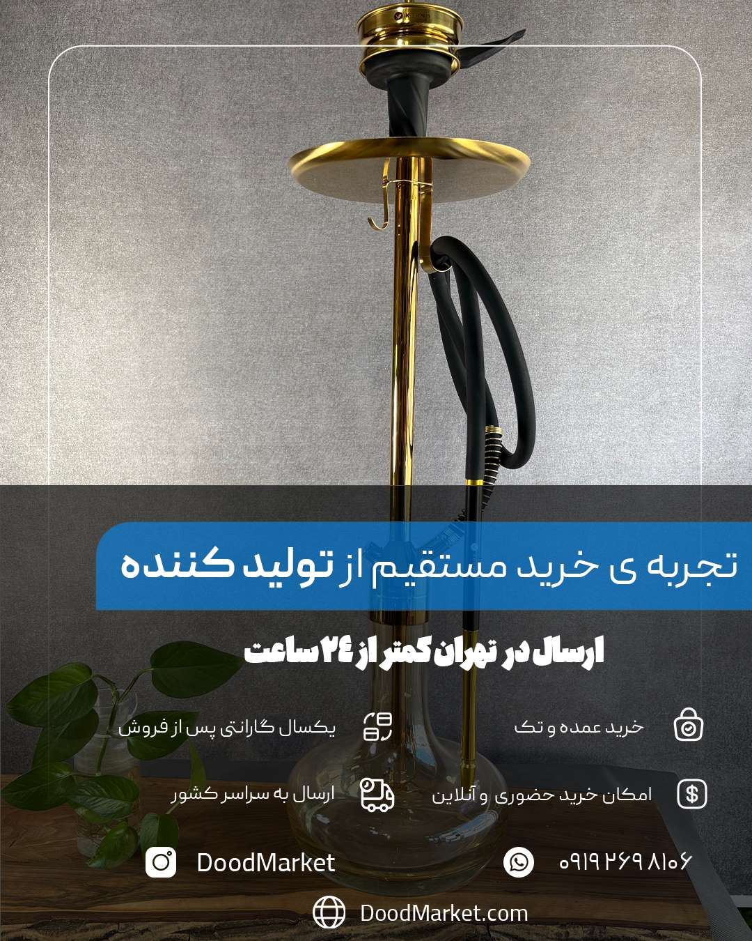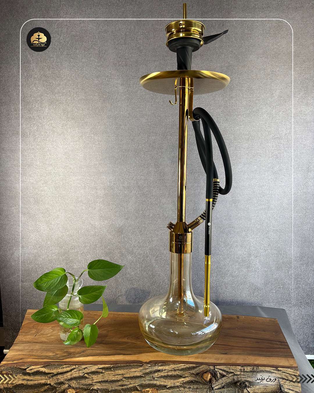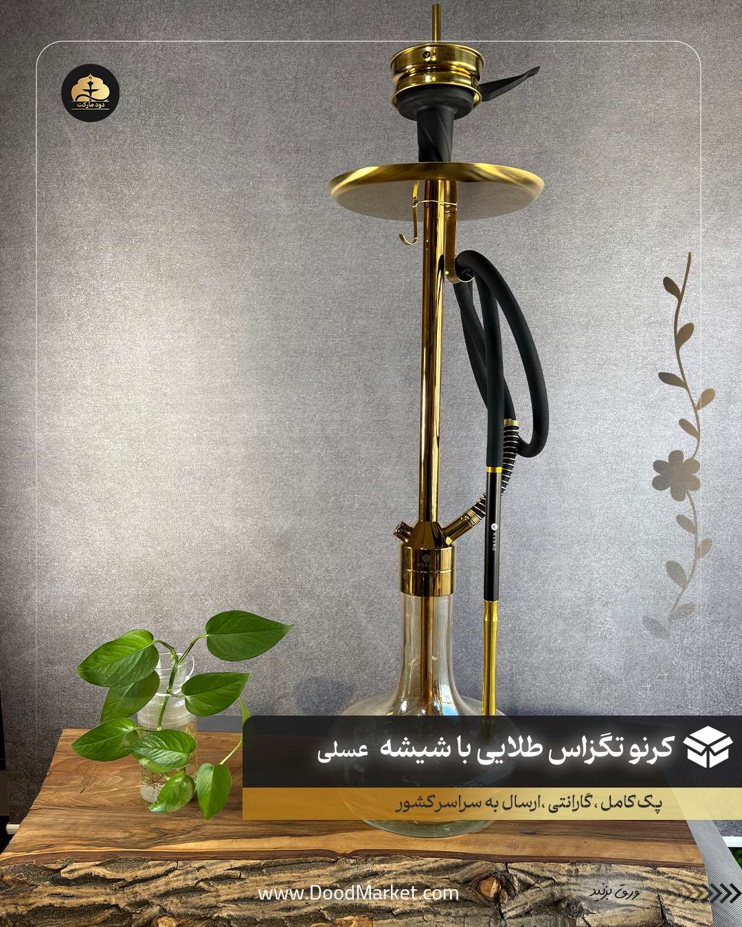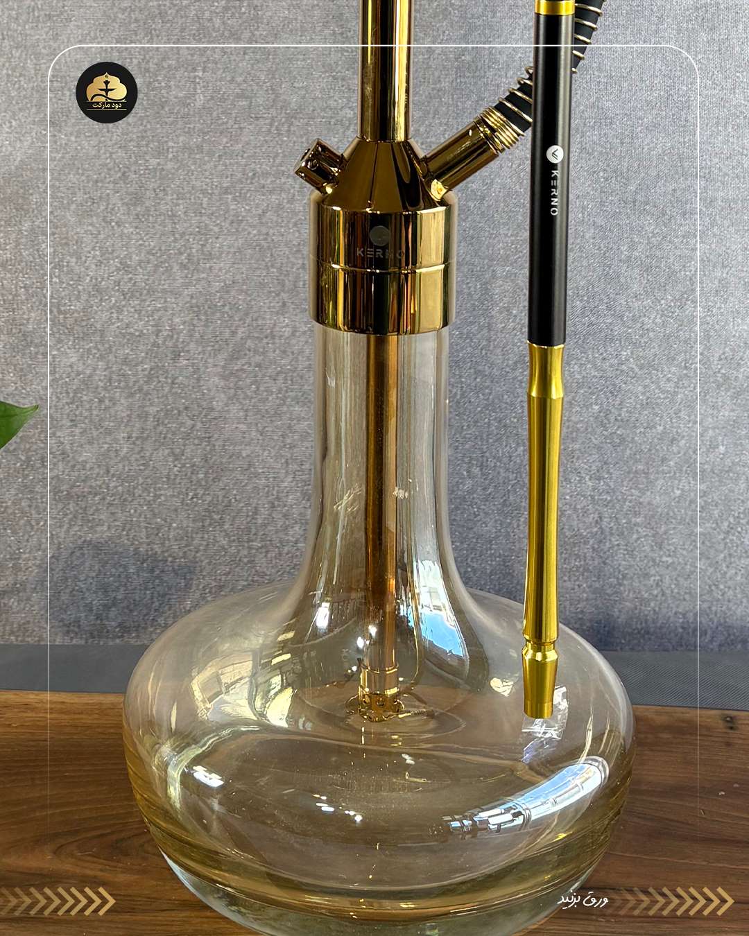 قلیان کرنو تگزاس طلایی شیشه عسلی دودی | خرید قلیان لوکس کرنو