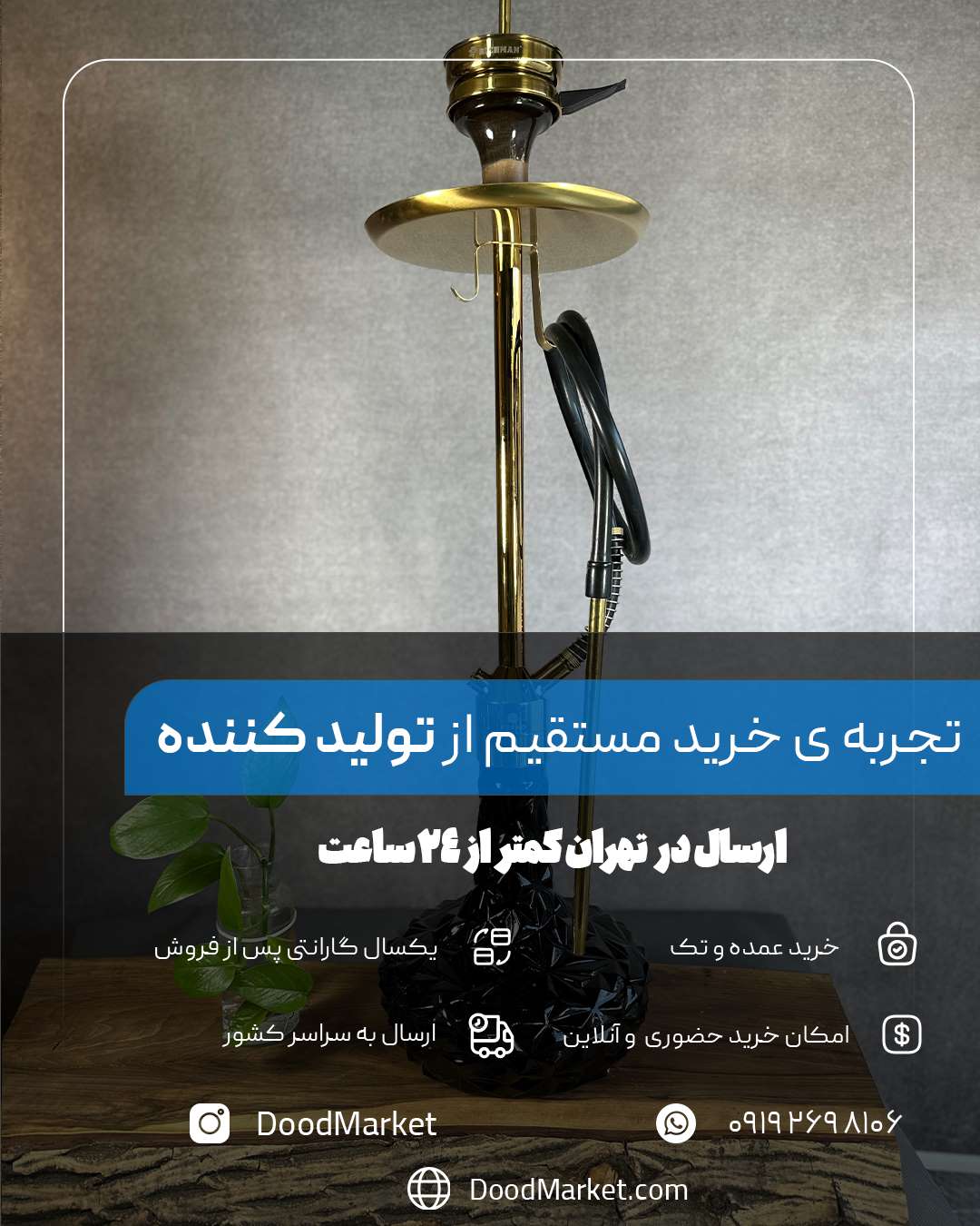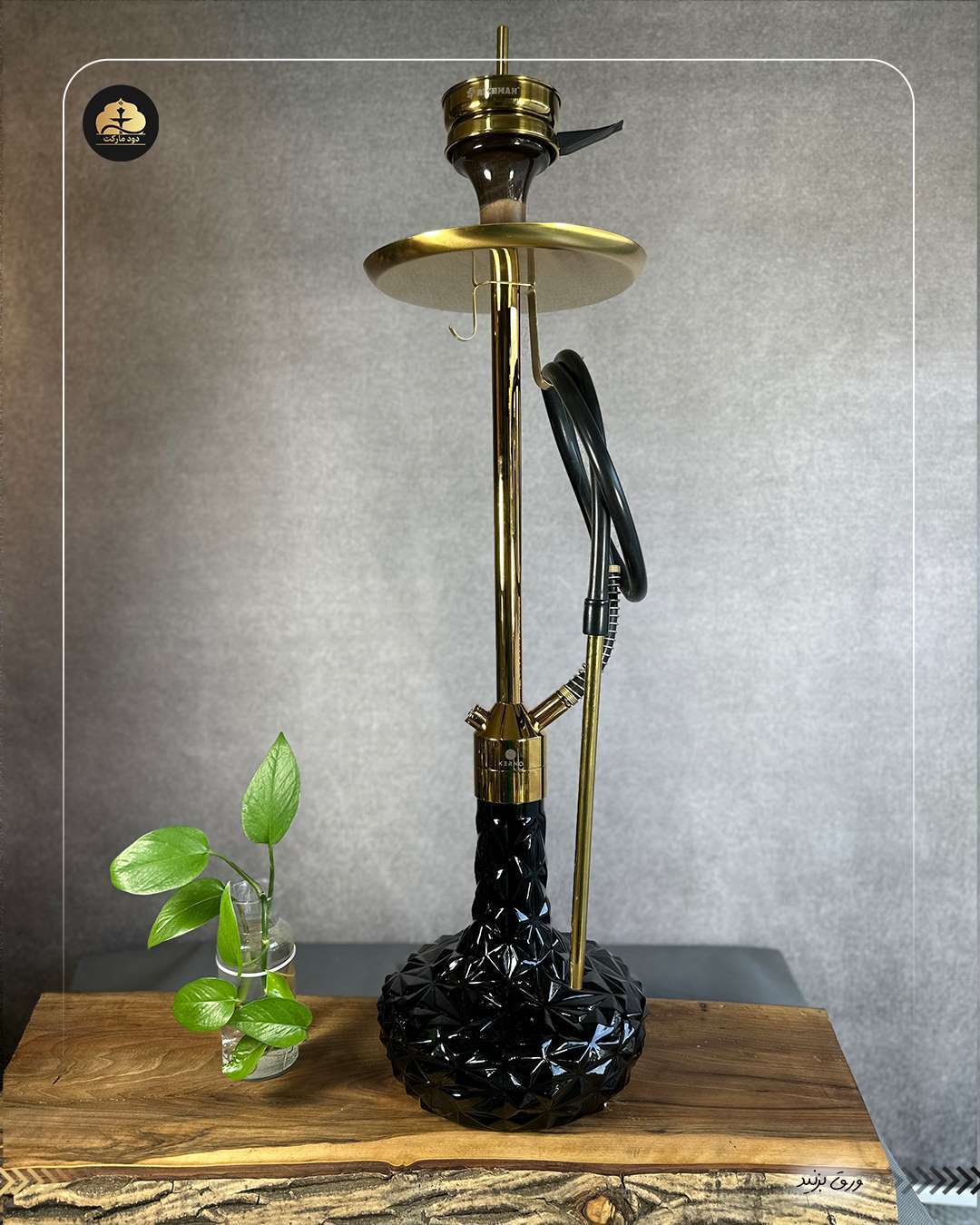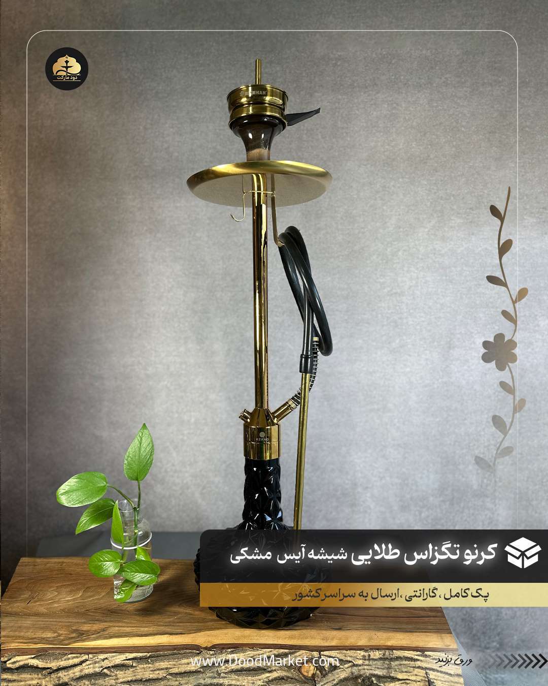 قلیان کرنو تگزاس طلایی شیشه آیس مشکی | خرید قلیان لوکس کرنو