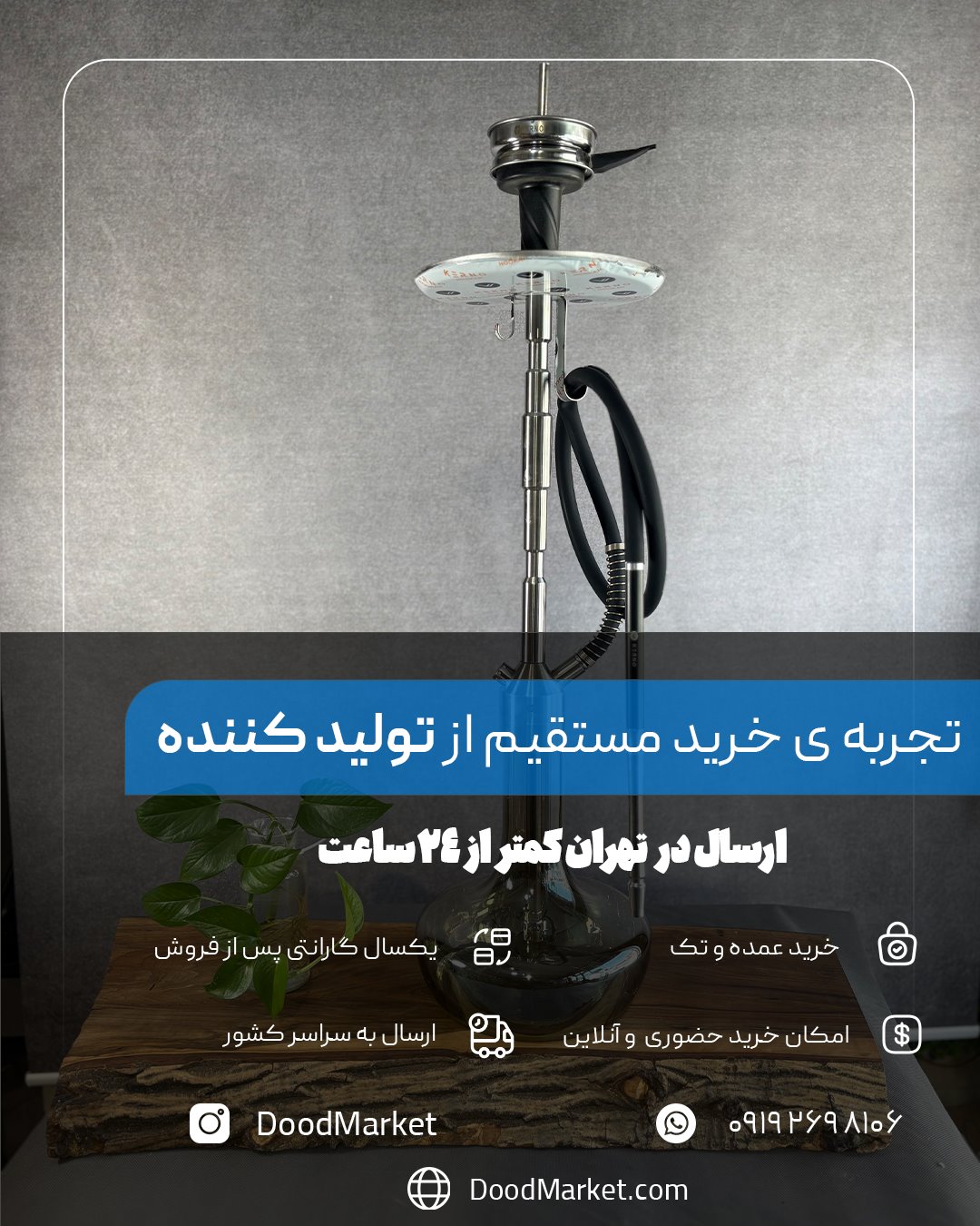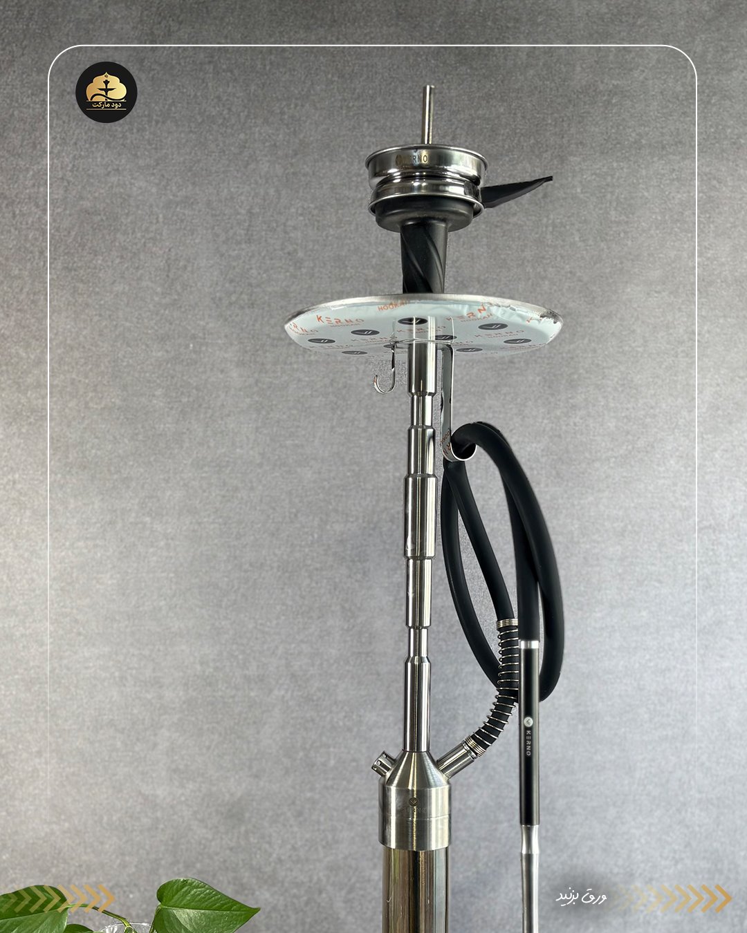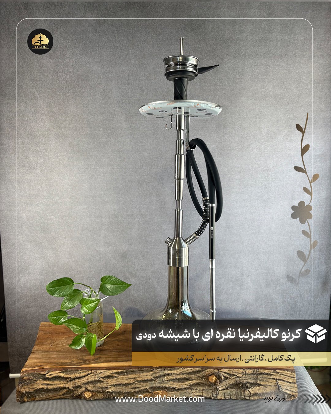 قلیان کرنو کالیفرنیا نقره ای با شیشه دودی | خرید قلیان لوکس کرنو