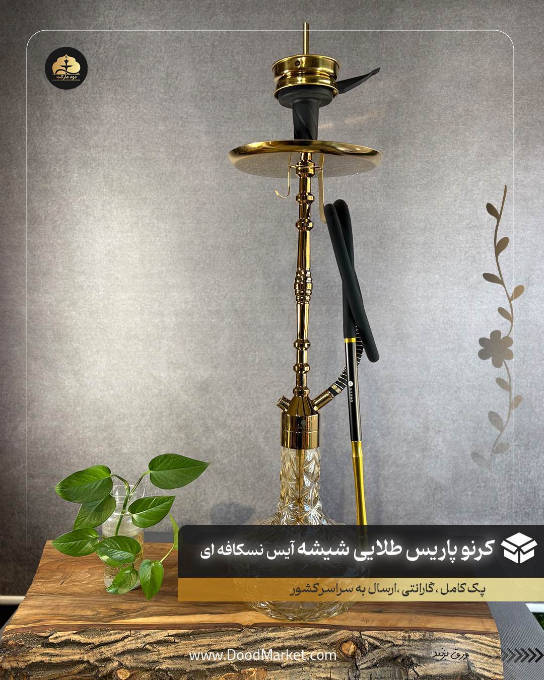 قلیان کرنو پاریس طلایی شیشه آیس عسلی | خرید قلیان لوکس کرنو