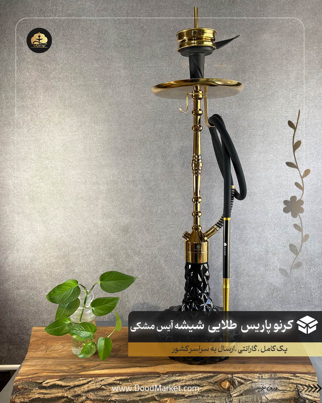 قلیان کرنو پاریس طلایی شیشه آیس مشکی| خرید قلیان لوکس کرنو