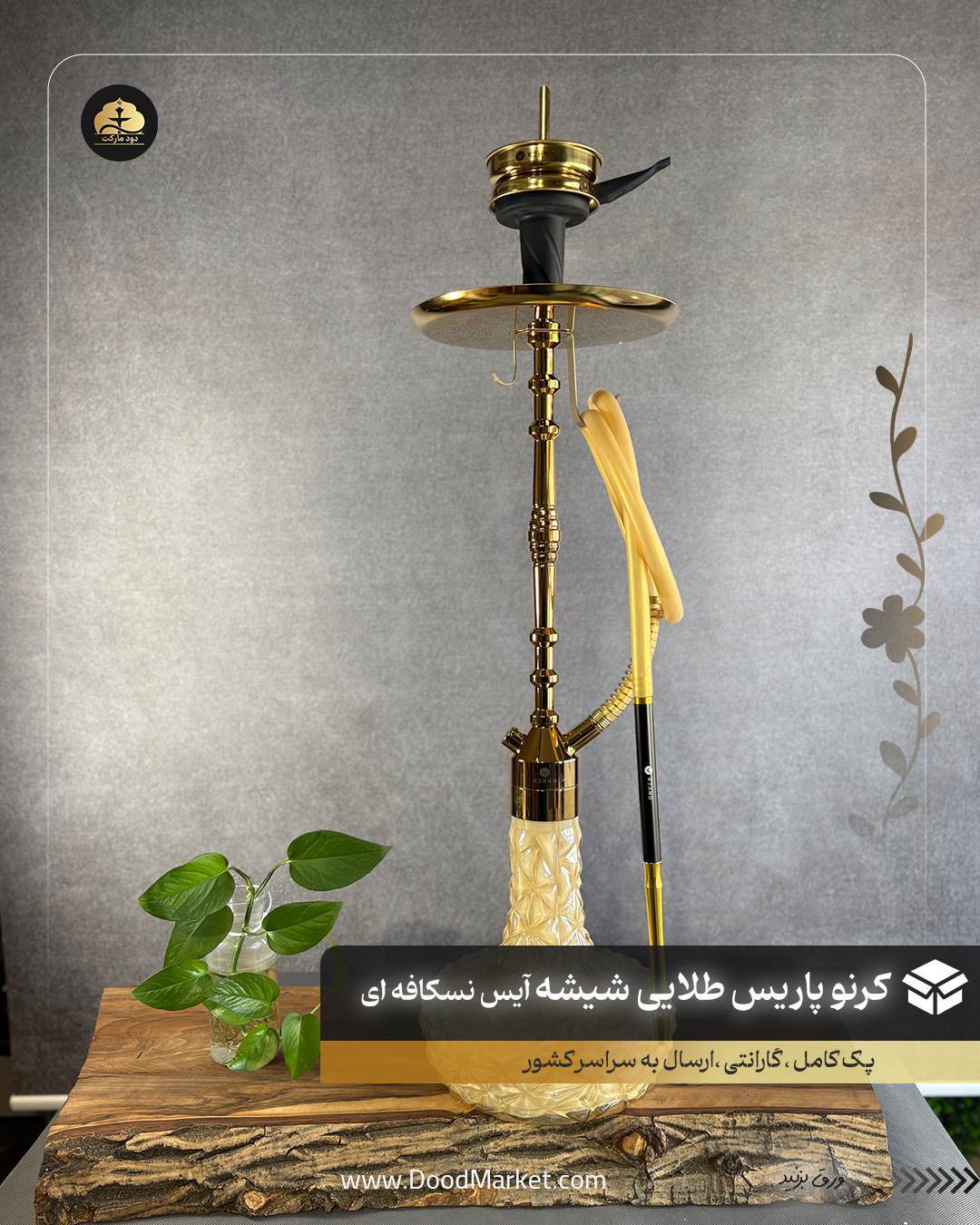 قلیان کرنو پاریس طلایی شیشه آیس نسکافه ای | خرید قلیان لوکس کرنو