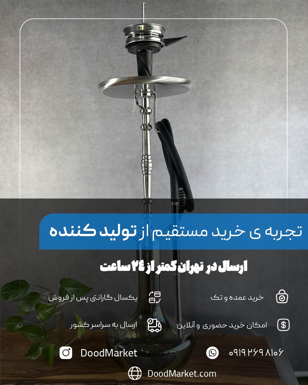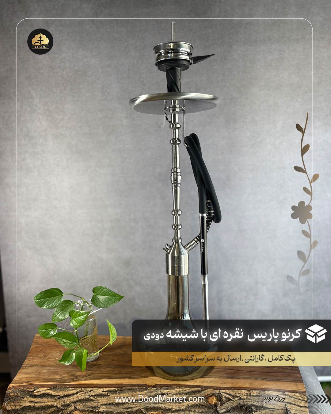 قلیان کرنو پاریس نقره ای شیشه دودی| خرید قلیان لوکس کرنو