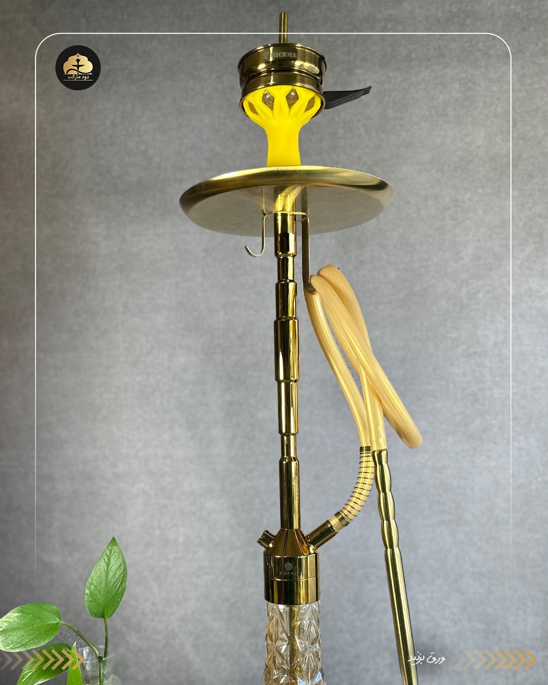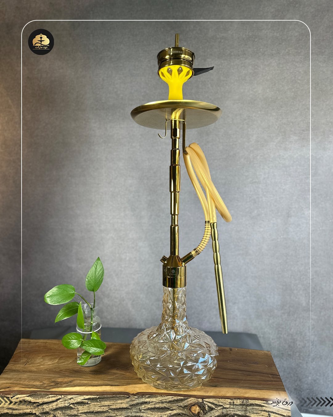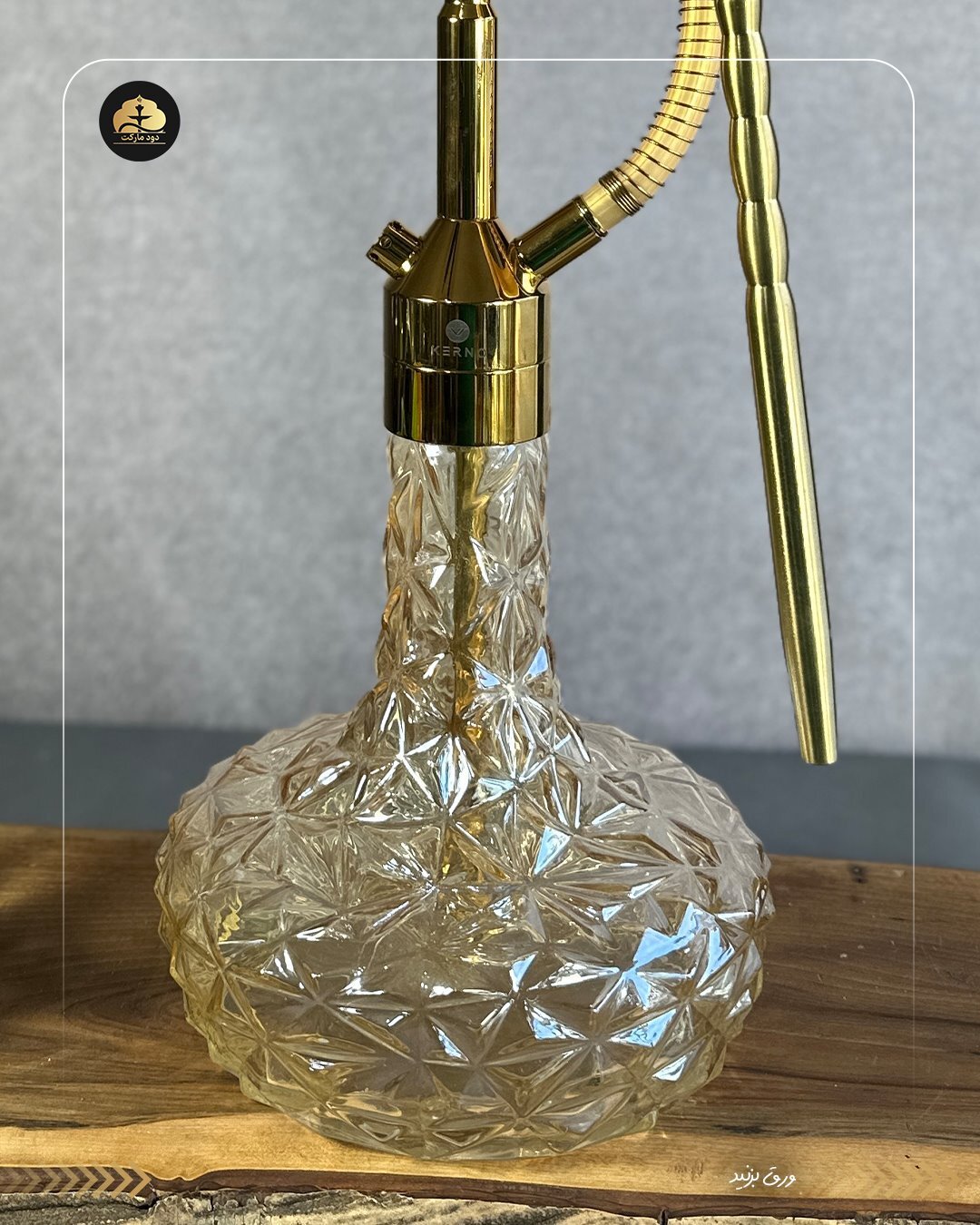 قلیان کرنو کالیفرنیا طلایی با شیشه دودی | خرید قلیان لوکس کرنو