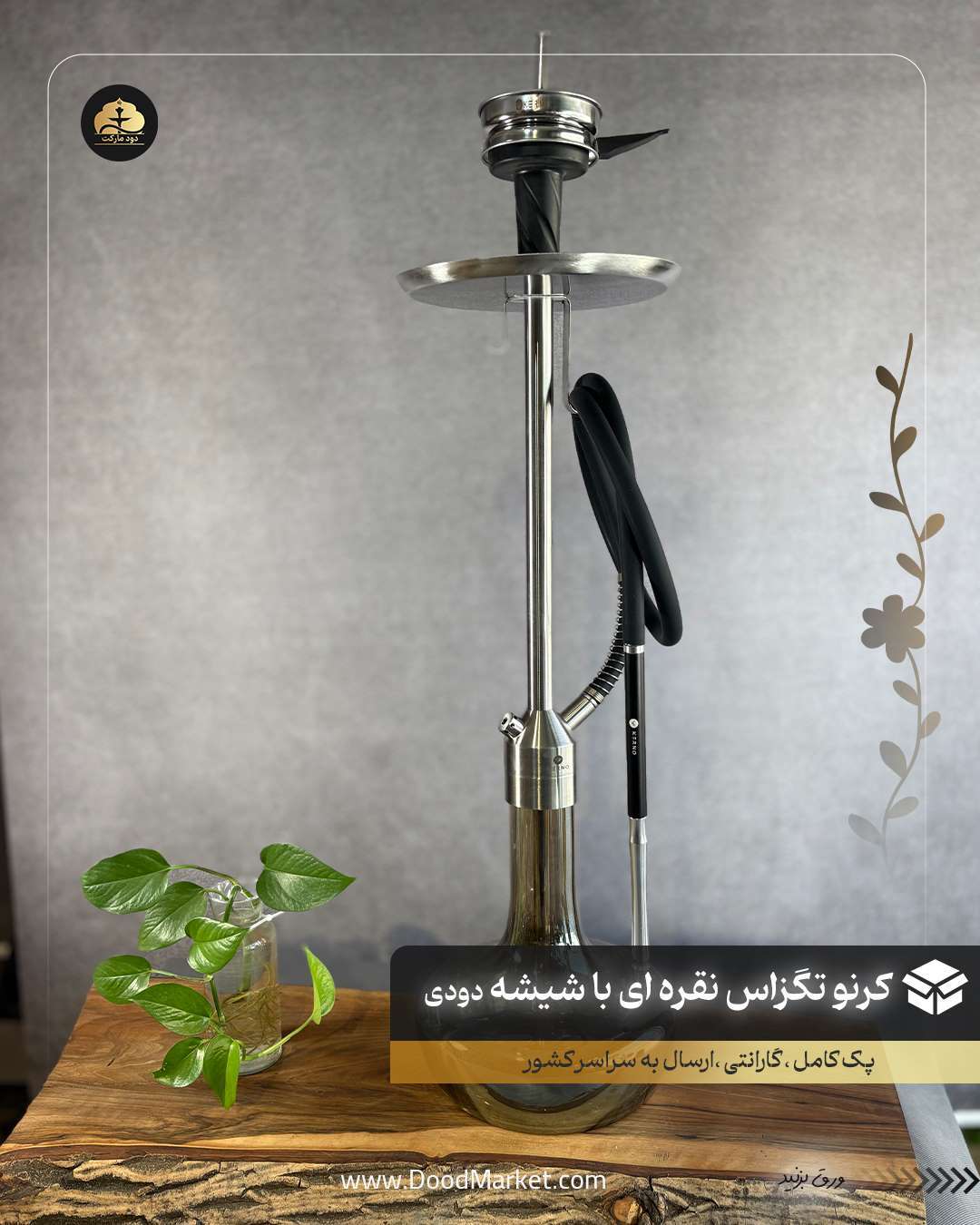 قلیان کرنو تگزاس نقره ای شیشه دودی | { اصل + 3 سال گارانتی }