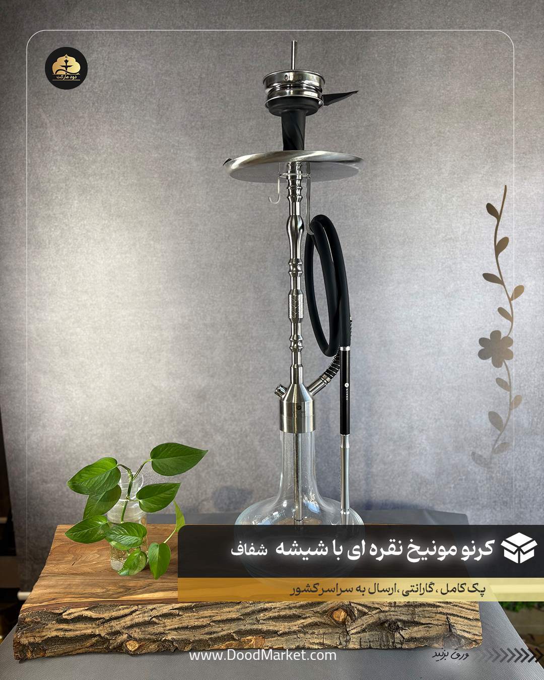 قلیان کرنو مونیخ نقره ای شیشه شفاف | خرید قلیان لوکس کرنو