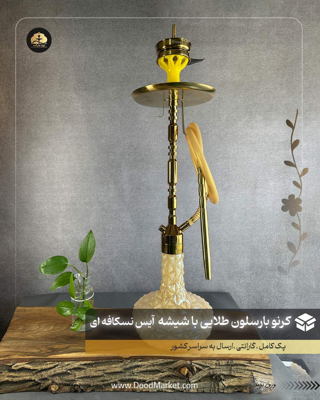 قلیان کرنو بارسلون طلایی شیشه آیس نسکافه ای | { اصل + 3 سال گارانتی }