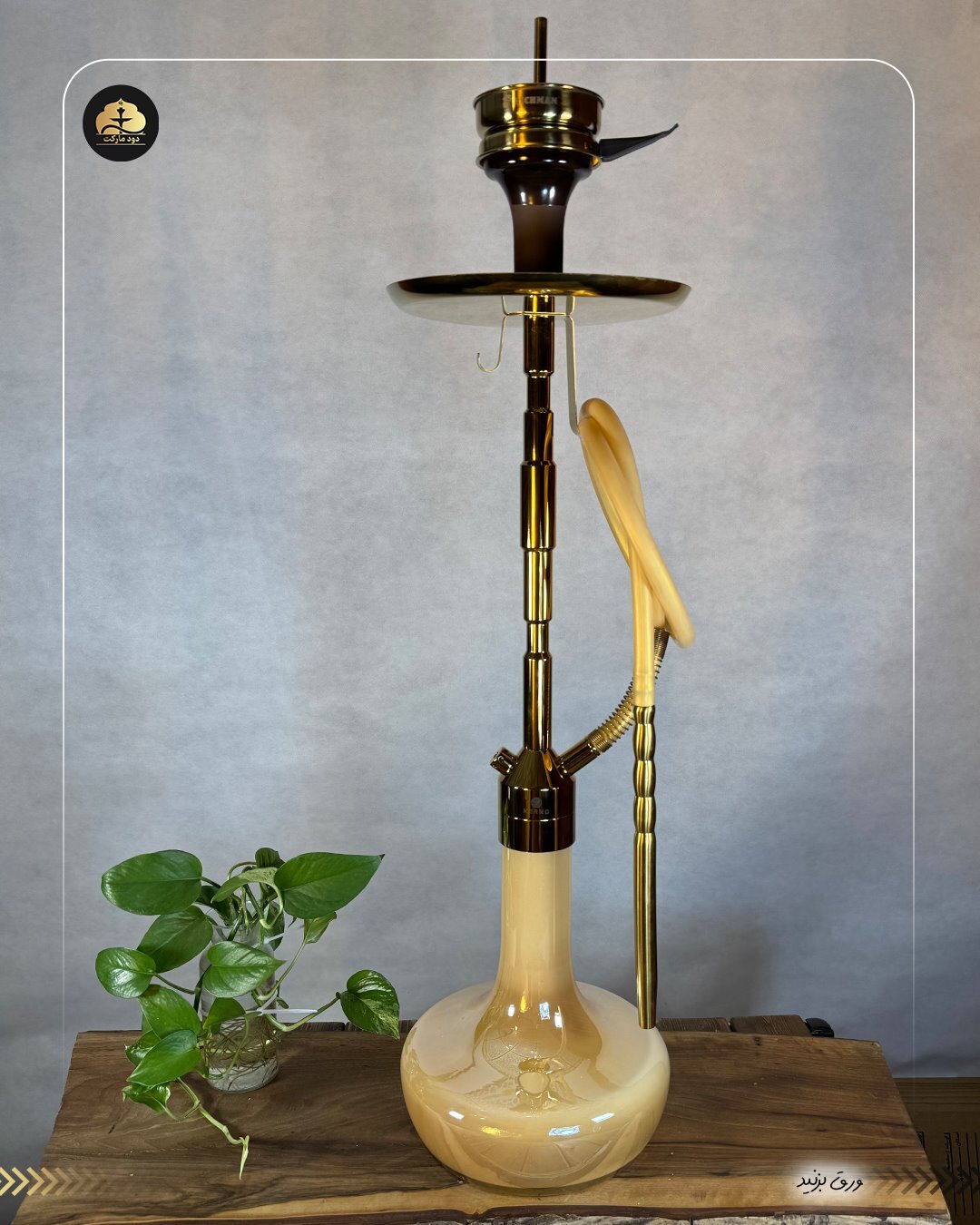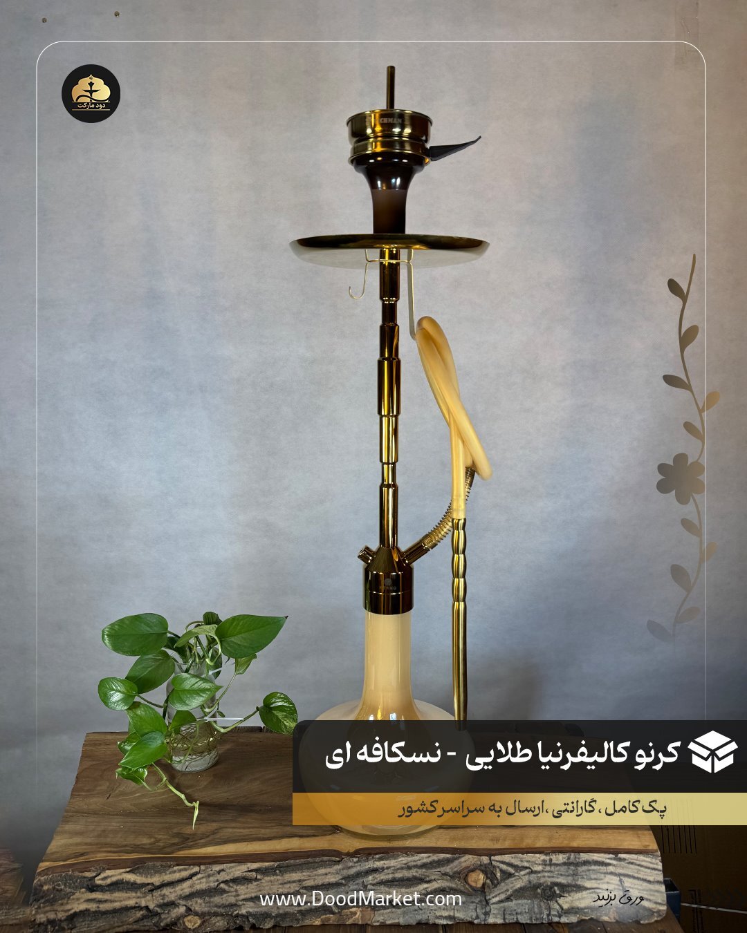 قلیان کرنو کالیفرنیا طلایی با شیشه نسکافه ای | { اصل + 3 سال گارانتی }خرید قلیان لوکس کرنو